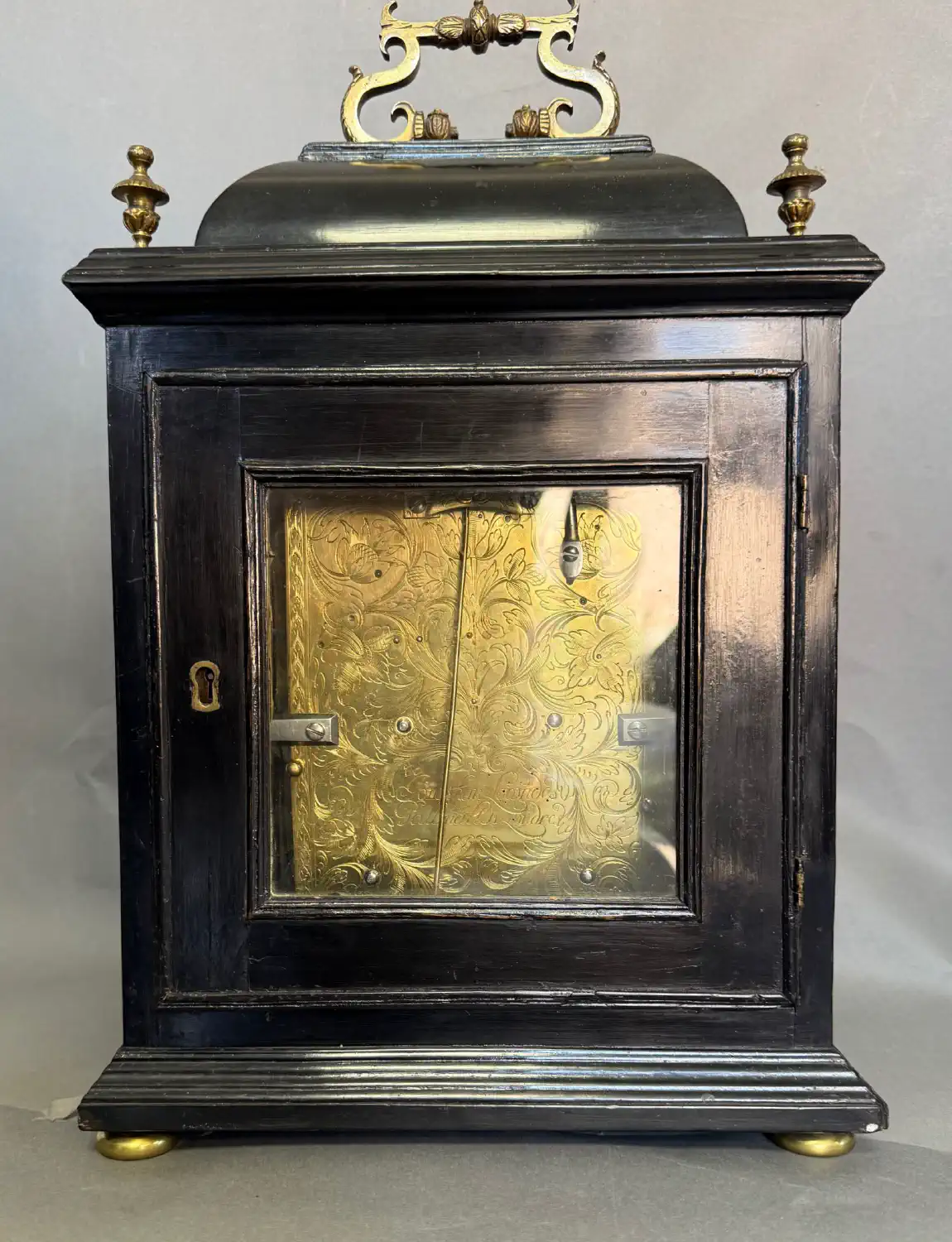 A good Willam and Mary eight-day spring-driven table clock signed on the backplate Jonathan Lowndes à Londres, c.1690-95.